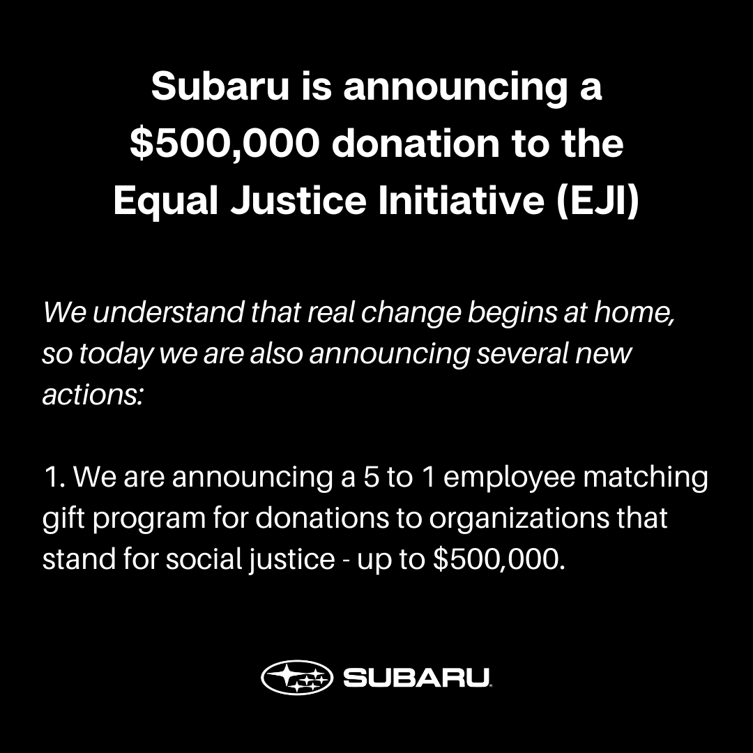 Subaru's tweet - "Subaru of America, Inc. stands with a ...